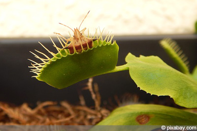 Die nötigen Nährstoffe bezieht die Pflanze ausschließlich aus den Klappfallen, zu der die Blätter der Venusfliegenfalle ausgerüstet wurden. Wie man sich vorstellen kann, sind das nicht einfach nur Blätter, die zusammenklappen, wenn eine Fliege sie berührt. In diesem Fall könnte die Venusfliegenfalle wahrscheinlich sehr lange einladend die Klappe aufreißen, es würde nichts passieren.